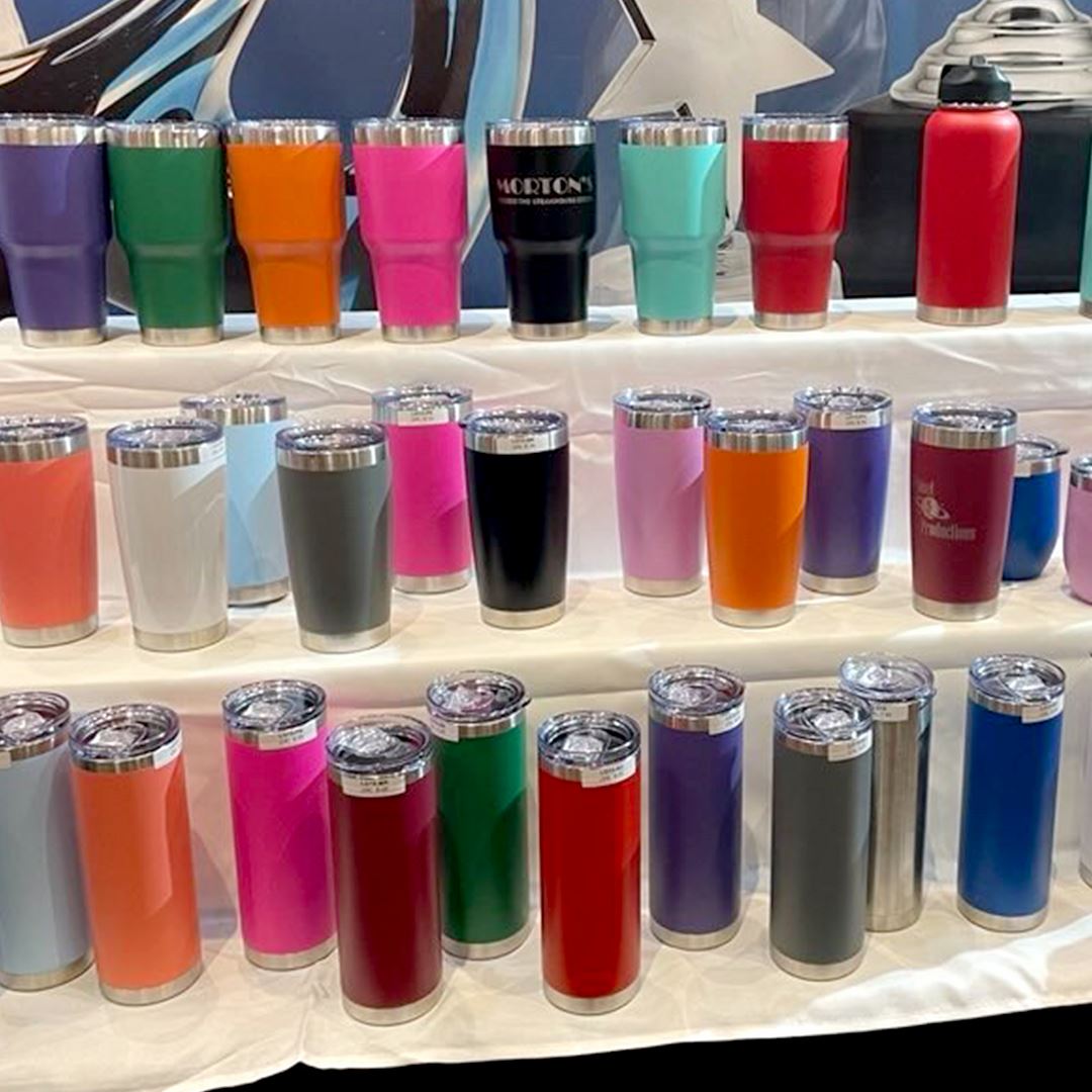 Photo of festival promotional products bottles pens brochures stickers tote bags custom printed created as part of our April 2025 custom branding and printing projects. Perfect for businesses and events in Arvada Colorado looking for local printing solutio