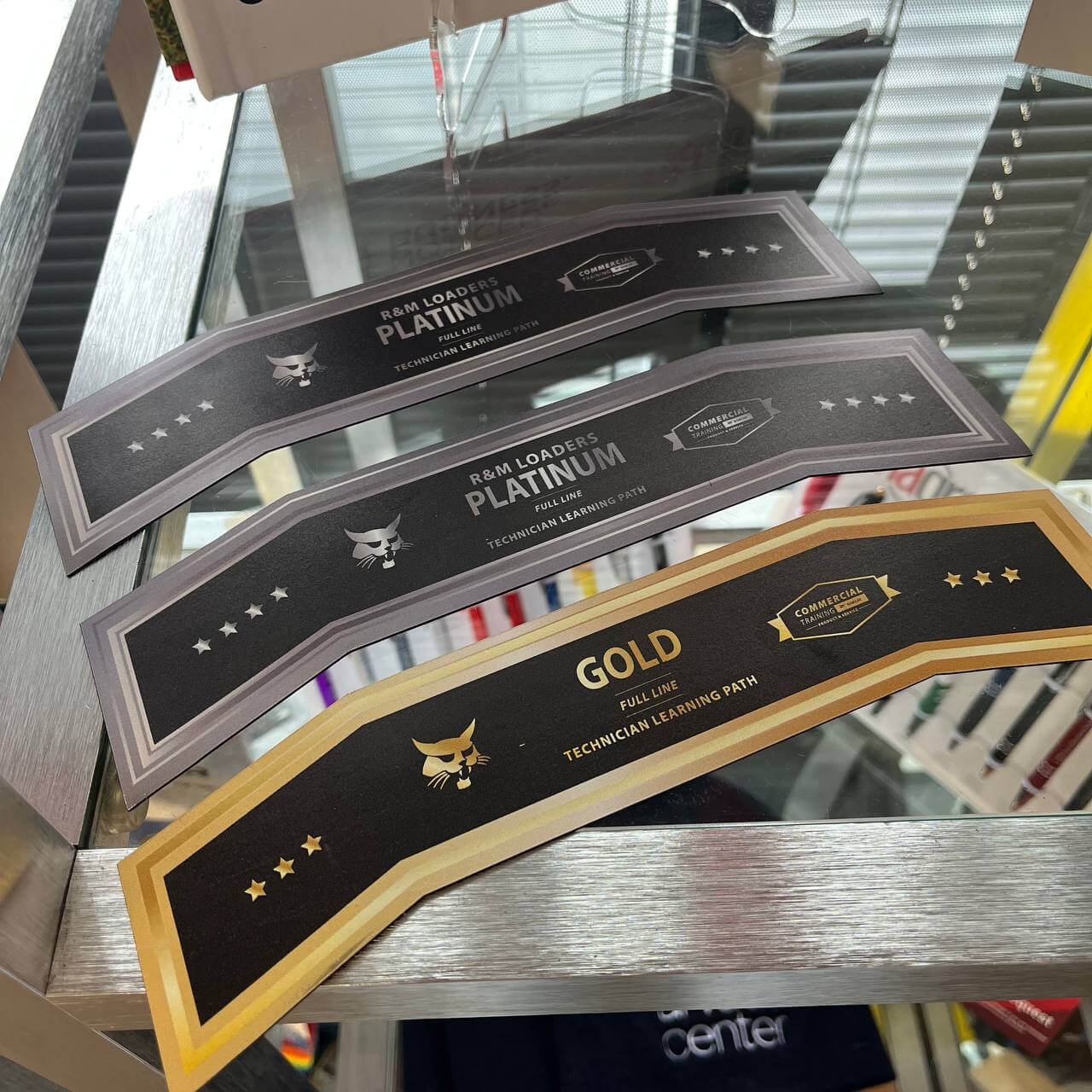 Custom printed patches, keychains, and price tags designed for businesses in Aurora CO.