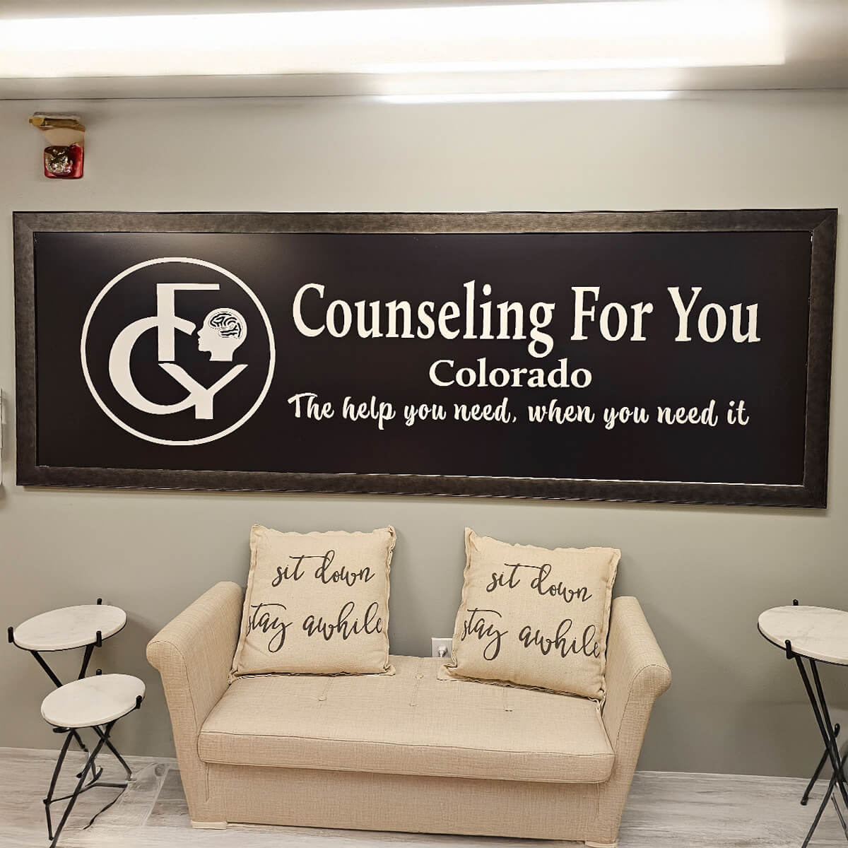 Photo of custom business sign number of the room created as part of our April 2025 custom branding and printing projects. Perfect for businesses and events in Aurora Colorado looking for local printing solutions. Find your printshop near me!