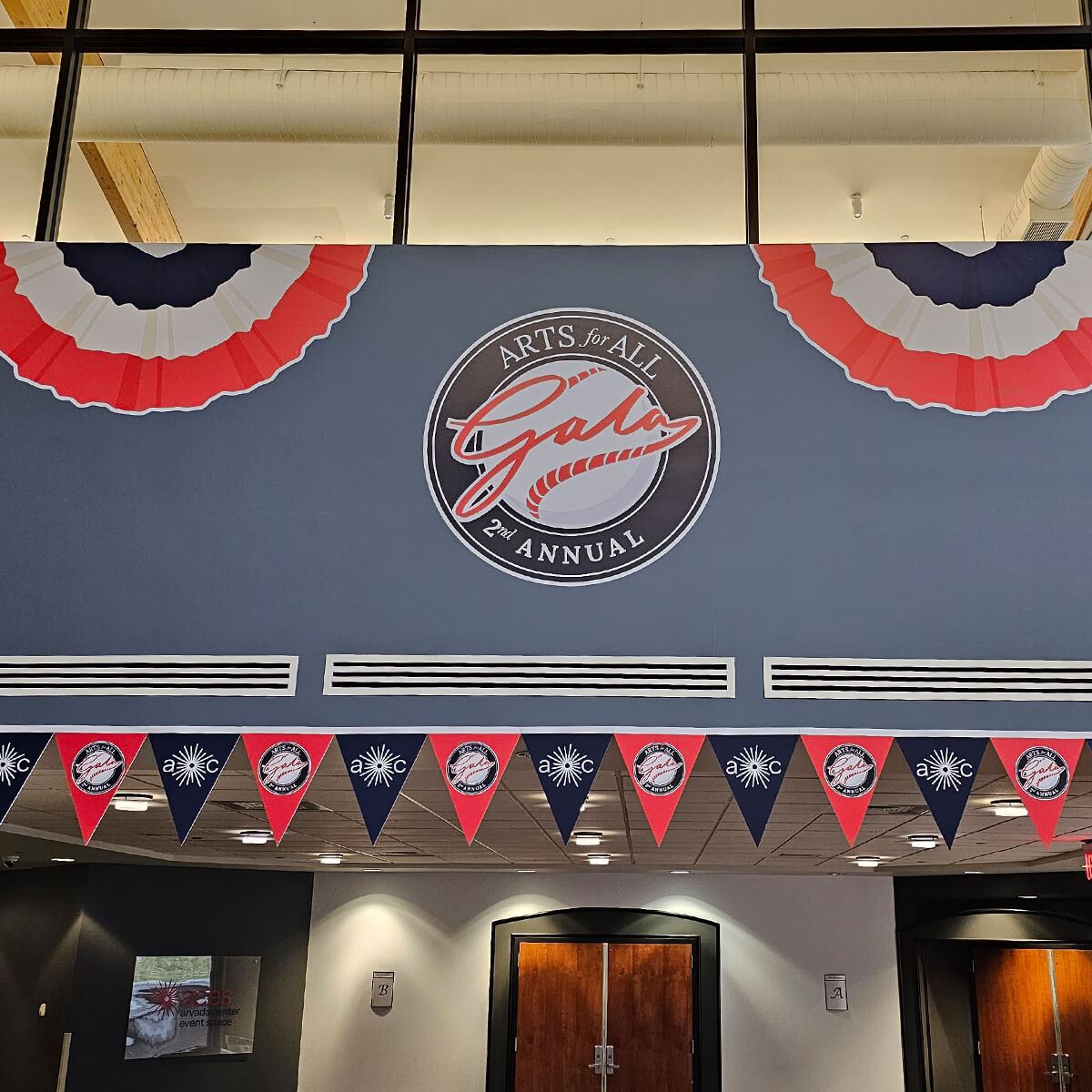 Elegant removable vinyl graphics for a special gala event, installed by AlphaGraphics Aurora.
