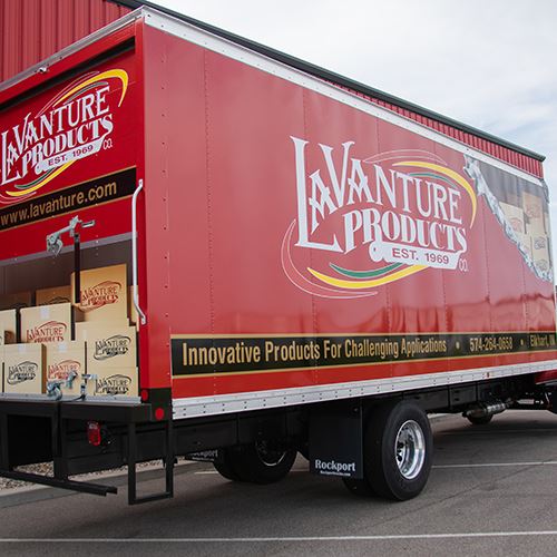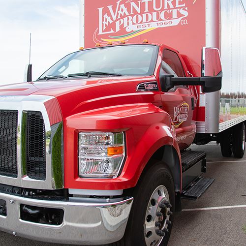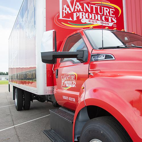 LaVanture's truck generates brand exposure every day during regular delivery routes. These daily operations carry the company's message to customers across multiple territories. The constant visibility reinforces LaVanture's professional image and builds recognition throughout their market area.